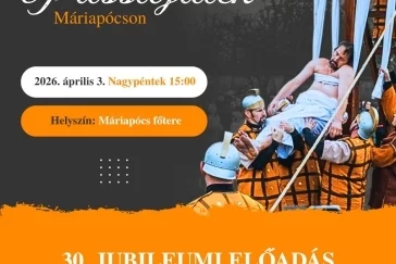 Ezúton ajánljuk figyelmükbe a 2026. április 3-án 15 órakor megrendezésre kerülő Csíksomlyói Passiójáték 30. jubileumi előadását, melynek helyszíne Máriapócs főtere a Kossuth tér.